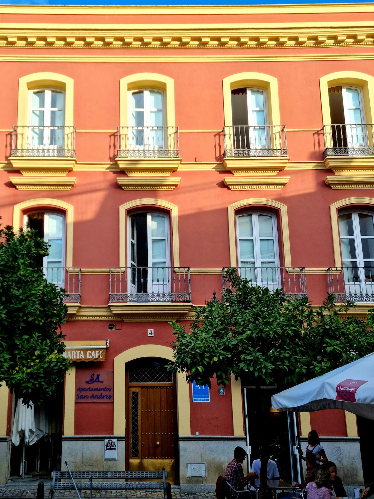 Apartment equipped with heating/air conditioning. Spacious, comfortable and perfect for the summer in Seville. It is built in an old house-palace completely restored and retains a 1-meter-wide exterior wall that insulates from heat and noise. Ideal if what you want is to be comfortable on your trip and live as if you were a Sevillian.