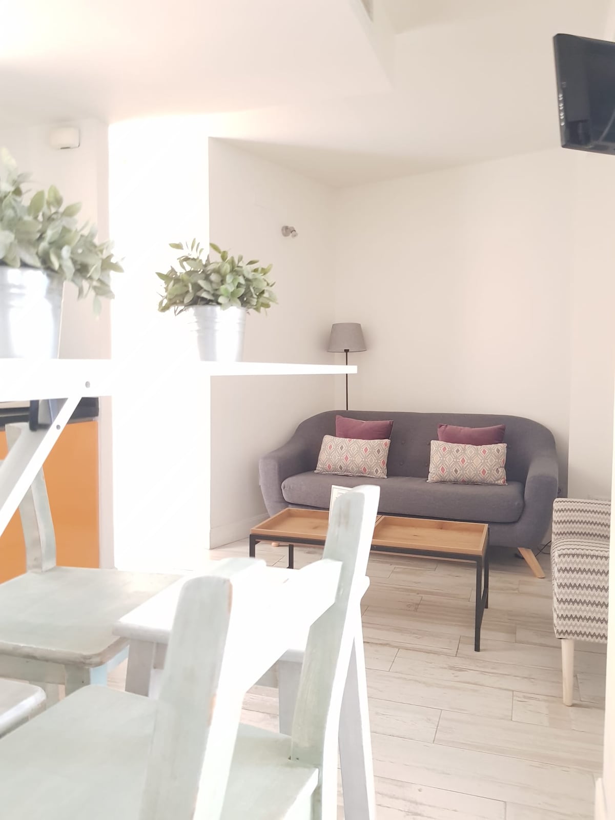 Beautiful apartment located on the 2nd floor of a typical Sevillian house (with a lift) which features 5 apartments. On the rooftop lies a swimming pool and a solarium for our guests, with stunning views of the Cathedral and the rooftops of the old town. The apartment boasts a bedroom with a king size bed (180x200), a complete bathroom with shower and a living room with a kitchen. It's fully equipped with linen, towels and toiletries. The laundry area is doted of washing machine and dryer.
