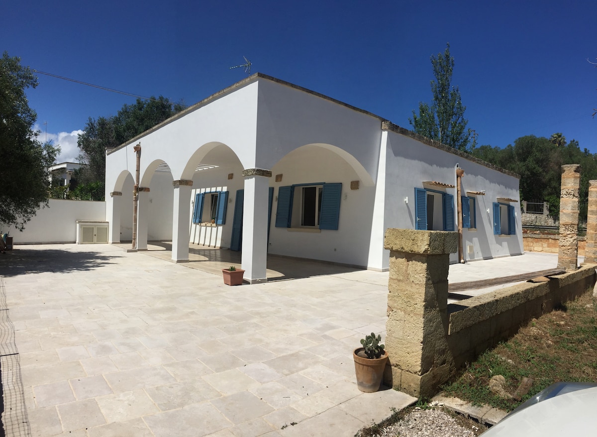 Villetta indipendente e nuovissima nella campagna salentina. Immersa nel verde in un incantevole panorama di ulivi secolari, si trova a soli 10 minuti di auto dalla famosissima spiaggia delle Maldive del Salento, visibile anche dal terrazzo sopraelevato. La sua posizione strategica permette di visitare le più famose località salentine quali Gallipoli, Otranto, Leuca e di scegliere una spiaggia sullo Ionio o Adriatico. Gli interni sono arredati con stile, coniugando ricercatezza e funzionalità.