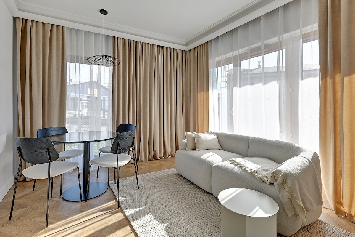 A freestanding bathtub, balcony, and stylish interiors — perfect for couples or families with children! This apartment features a bedroom and a sofa bed in the living room, comfortably sleeping up to 4 guests. On-site amenities include a gym, sauna, rooftop terrace, and playground. Located near Gdańsk’s Old Town and the Motława River — ideal for a romantic getaway or a family stay.