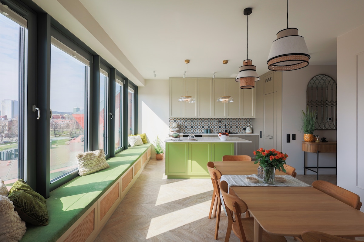 This stylish place is ideal for groups and families. Spacious apartment, 120 squaremters, 3 bedrooms, huge living area: living room, dining room and kitchen with the most beautiful view of the panorama of the Old Town Gdańsk. Guests can admire the views from both: the terrace and the windows of the apartment. We offer all the comforts, access to the fitness area and saunas, free parking space.