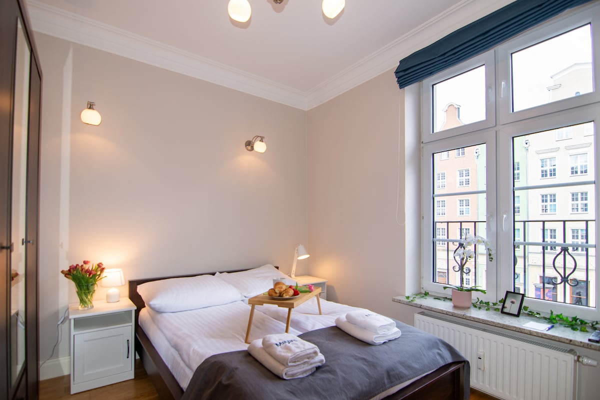 Niepowtarzalny apartament z najlepszym widokiem na Starym Mieście w Gdańsku. Apartament posiada przestronny, umeblowany taras z widokiem na zabytkowe kamienice, wizytówkę Gdańska - Żuraw, rzekę Motławę oraz Bramę Zieloną. Apartament mieści się w inwestycji Deo Plaza, która umożliwia gościom dostęp do strefy SPA, basenu, (płatne dodatkowo na miejscu). Apartament idealny dla gości ceniących sobie luksus, wygodę i wypoczynek na najwyższym poziomie.