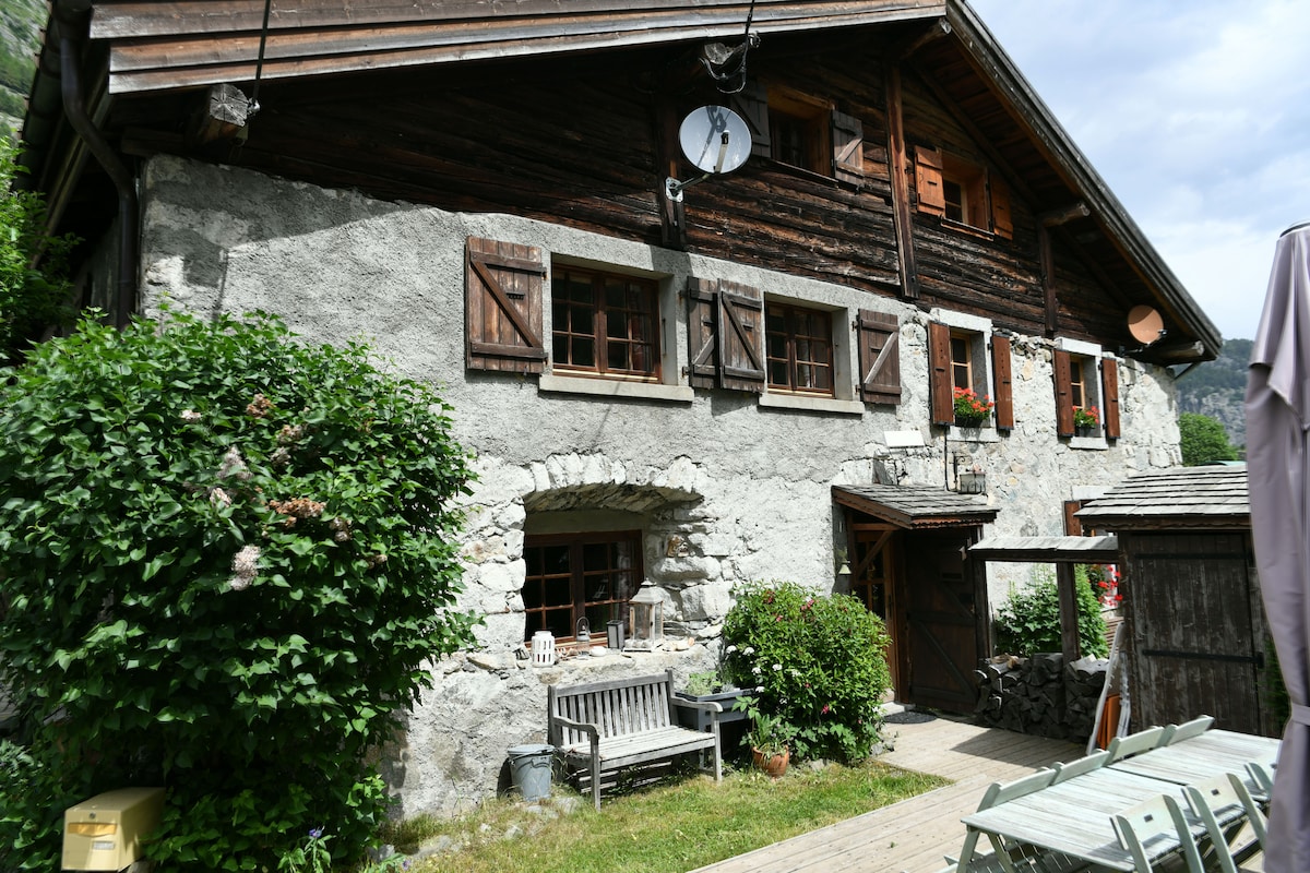 Petit-déjeuner inclus. Si nous devions être absents, les prix sont baissés automatiquement. L’Abri’cottage est l’alliance d’un raccard centenaire et d’un chalet neuf. Nous avons mis tout notre cœur dans sa conception et nous espérons que vous vous y sentirez bien. Il est situé à 1300 mètres d’altitude, en amont du col de la Forclaz, au cœur du petit et calme village deTrient sans restaurant ni commerce alimentaire. Dans notre jardin et en face de notre maison. PAS DE TMB.