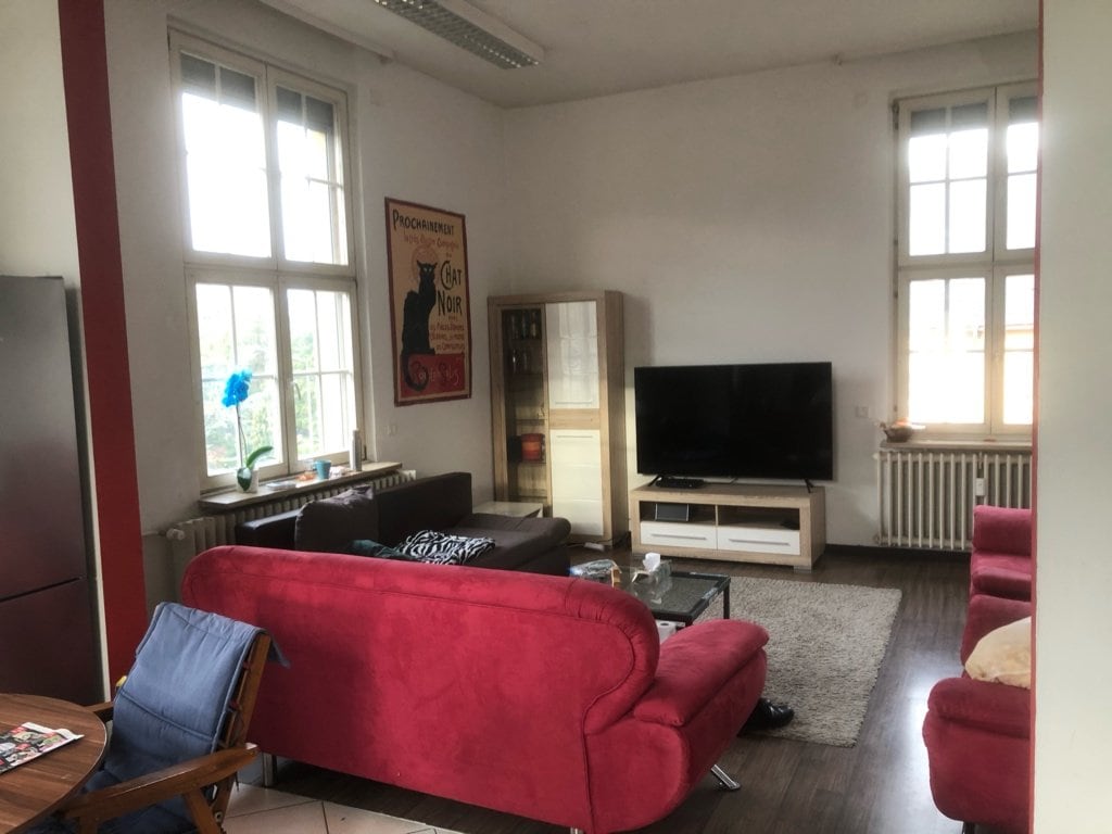 Appartement de caractère d une surface de 100m², situé au premier étage d une maison individuelle, dans quartier calme et arboré , 2 grands balcons avec vue imprenable sur le Schlossberg. Un téléviseur Netflix dans le salon et un petit écran dans la chambre.