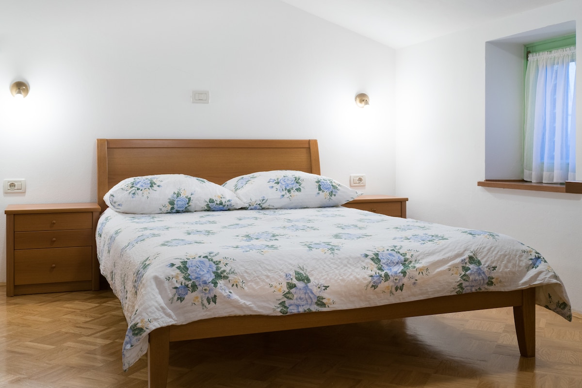 Situato al primo piano, questo appartamento luminoso e accogliente dispone di due camere da letto, un bagno privato e un secondo bagno completo, cucina attrezzata, soggiorno con divano letto e balcone. Vista aperta sul mare e sul verde del Carso. Ideale per famiglie, coppie o amici in cerca di relax e natura.