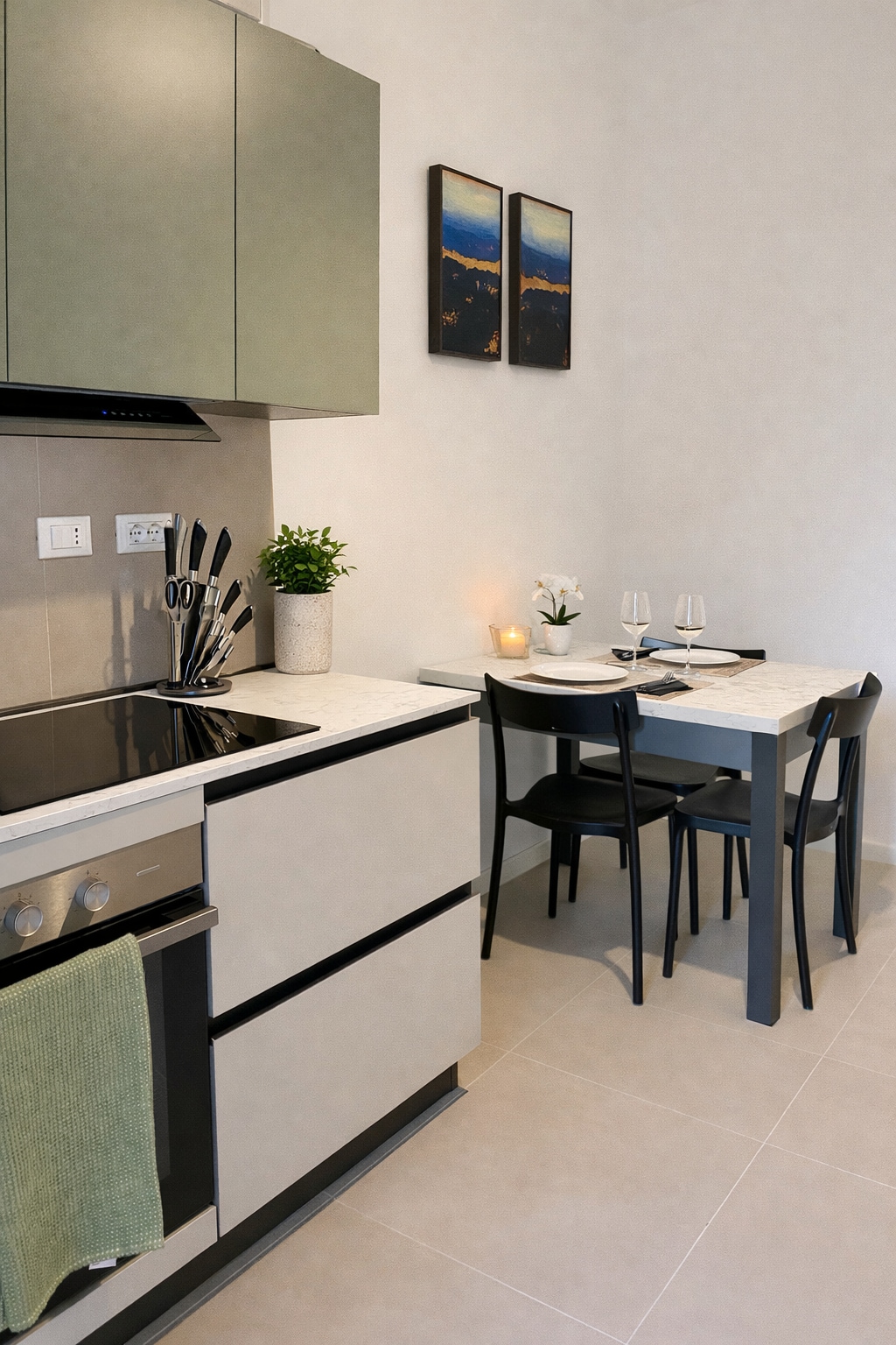 The apartment has been renovated in October 2018, the furnitures are completely new. It has a kitchen with a big oven and a nice work plan. There is a bedroom and also a comfortable sofa bed. Wifi and a flat TV complete it. It is only 2 minutes from the train station and by walking on a pedestrian area you can reach the shopping area and the main tourist attraction. In the neighborhood there's a grocery store, some parking places, lots of bus stops and the best ice cream shop in town.