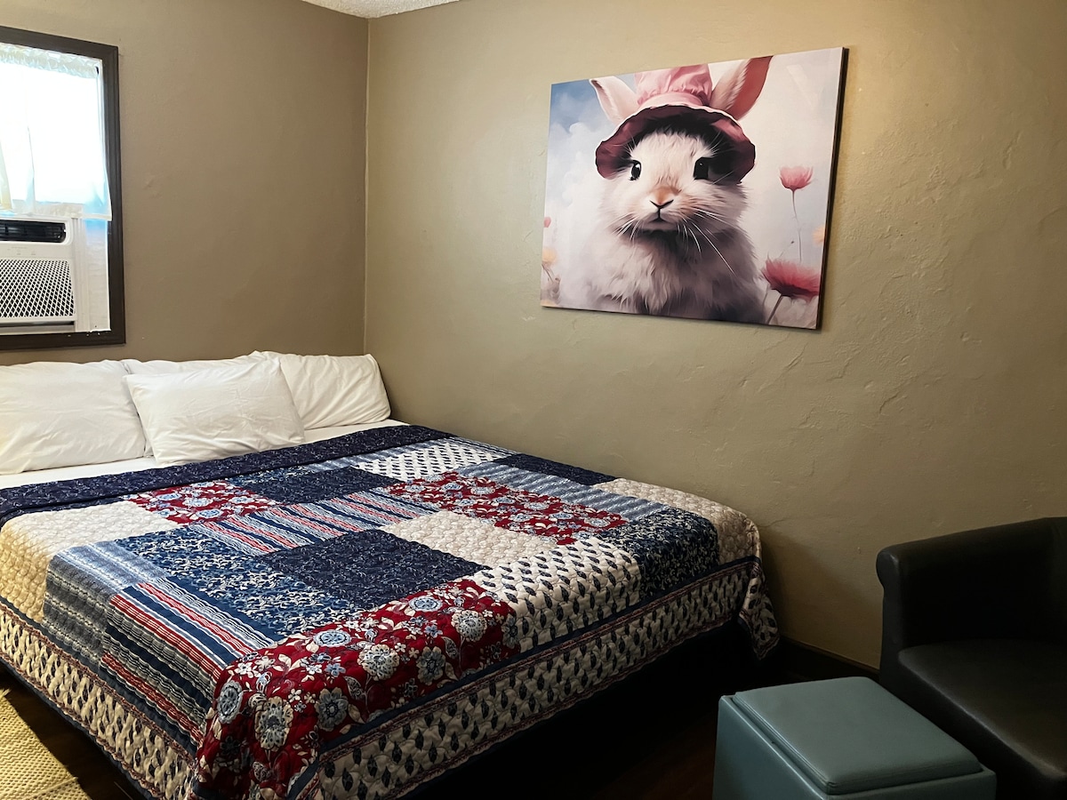 Welcome to the Bunny burrow in the heart of Aurora, Kentucky! Conveniently located 1 mile from LBL, Kentucky lake restaurants, gas station, Dollar General and laundromat. Plenty of room for your boat and off road roading vehicles. (Ask us where to park) motel style room provides King bed, microwave,mini fridge, and bathroom with essentials. No dog over 40 lbs. No cats, thank you! 18 minutes to Murray. 48 to Paducah..