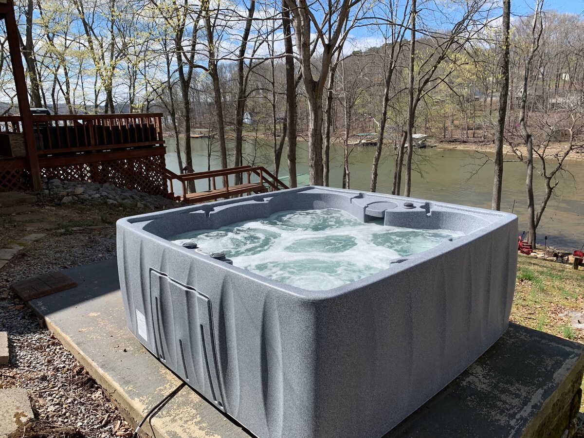 肯塔基湖(Kentucky Lake)上带热水浴缸的乡村家庭小木屋。