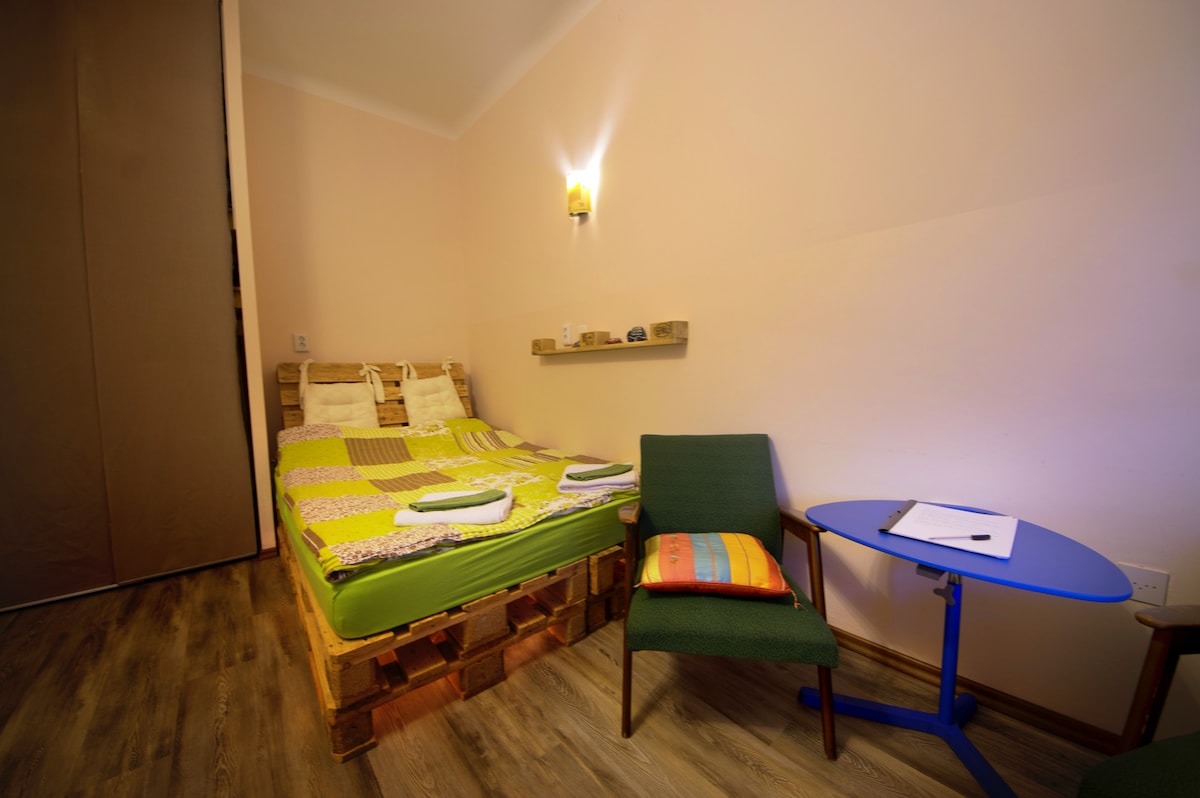 Each room has its own balcony. We have two double-bedded rooms with its own balcony and toilet with bathroom. We also have dining room with kitchen, where we serve breakfast. Breakfast is not incluided in the price. Our guests can use the kitchen (which is just for guests) to make a coffe and drink it in our beautiful garden.