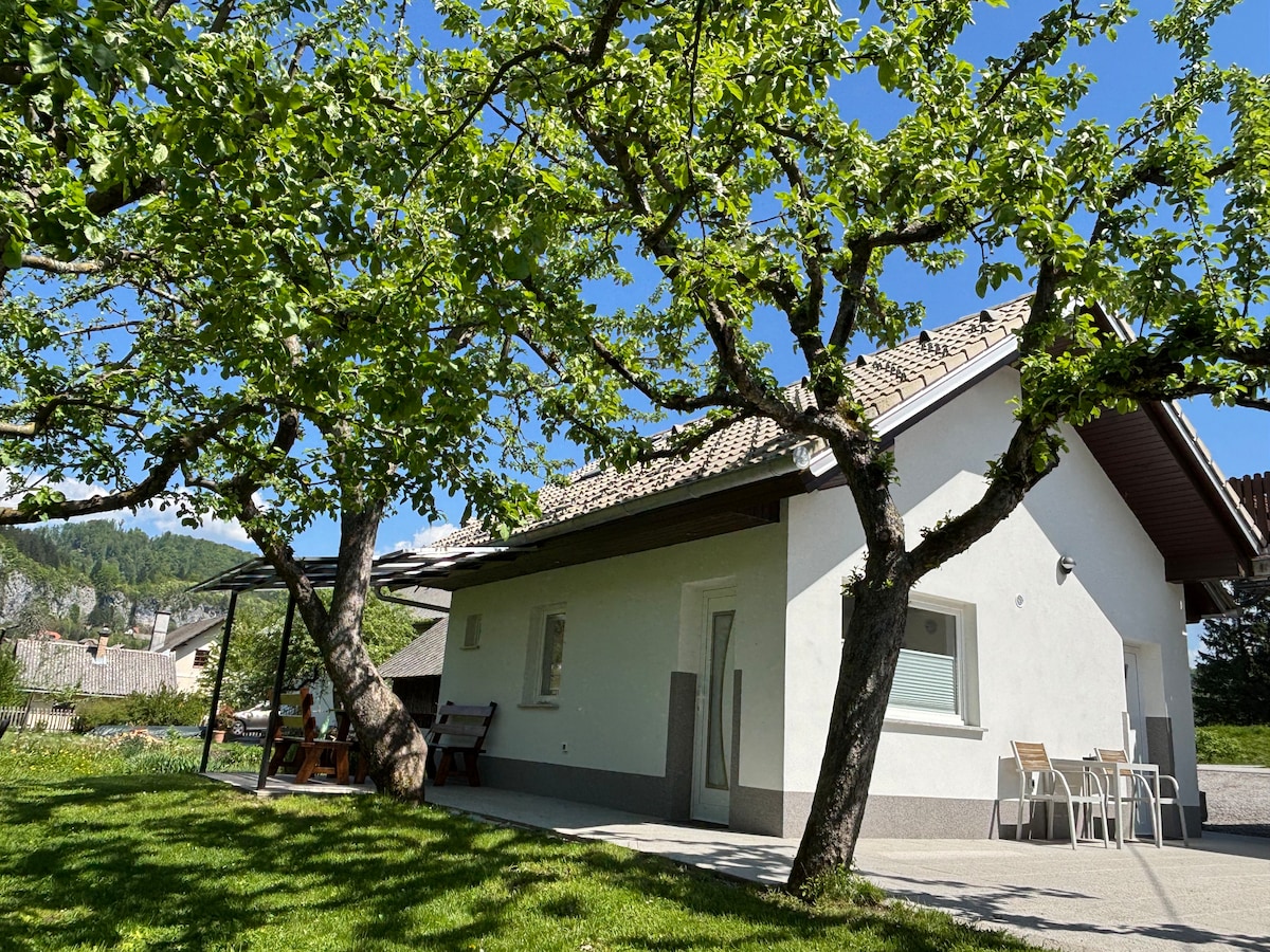 Need a getaway from crowd, neighbours and noise but just 5 km from Bled? Want to wake up with birds and Sava river singing? Than this place is perfect for you. Wooden house is settled in a big green garden, you can seat outside, use barbecue, pick fresh vegetable, from Jun to Sept cool in a small pool(3x3,5m) and rent a bike. The whole area is perfect for hiking, cycling, climbing and flyfishing - my husband is a guide for all rivers in Slovenia and provide everything you need.