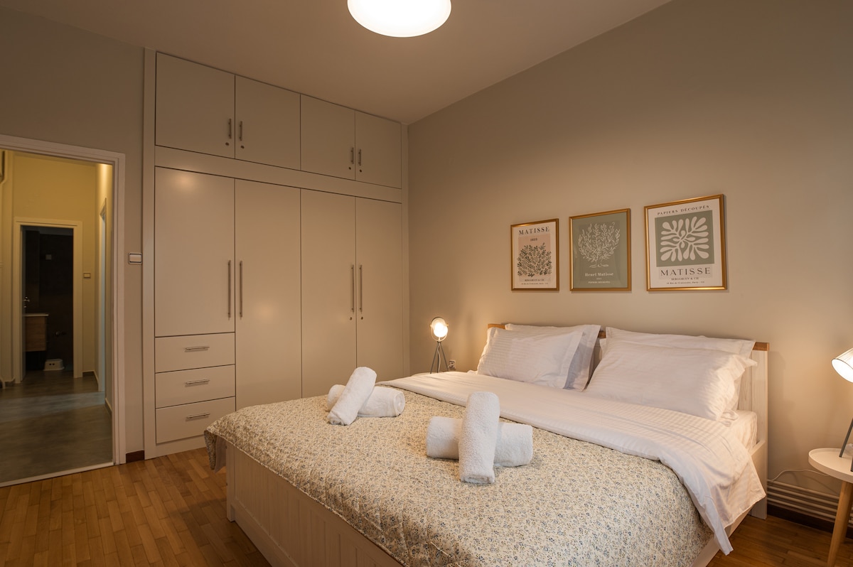A cozy, welcoming space fully equipped to provide comfort and functionality to guests. There is air conditioning, constantly hot water and heating. A lovely living room with smart TV (netflix, youtube etc) is waiting for you to relax. It is located in the center of Kalambaka across from the Train Station with easy access to Supermarket, Oven, Cafe, Gas Station and the Holy Meteora rocks, just a few minutes away. There is unlimited parking at the Train Station and around the building.