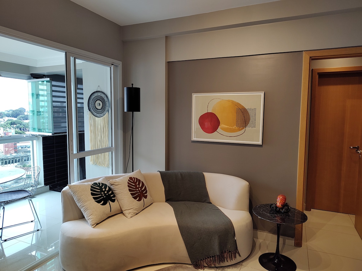 Um apto moderno e com tudo o que precisa para uma estadia agradável , completíssimo ! Está localizado a 2 minutos andando do Goiânia shopping e parque vaca brava , ao descer do prédio terás cerrado bar , faculdades , escolas , estarás no coração do Bueno !
