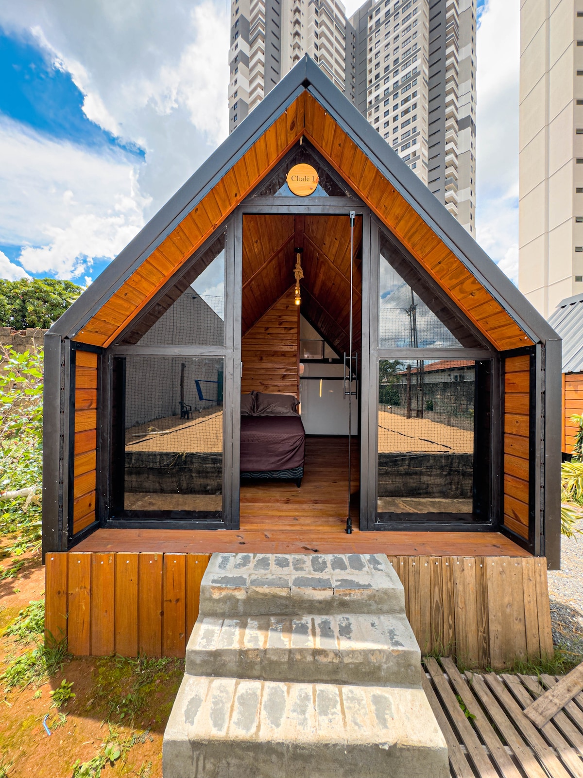 Cabana moderna e exclusiva no coração de Goiânia, no endereço chega Uber e IFood. Descubra uma cabana única, de design moderno e acolhedor, perfeita para quem busca tranquilidade sem abrir mão da cidade, Localizada em uma área privilegiada, este refúgio oferece uma experiência única de conforto e privacidade em meio à natureza, com um visual incrível para tornar sua estadia ainda mais especial. Ideal para casais ou viajantes que apreciam sofisticação, e um ambiente inspirador.