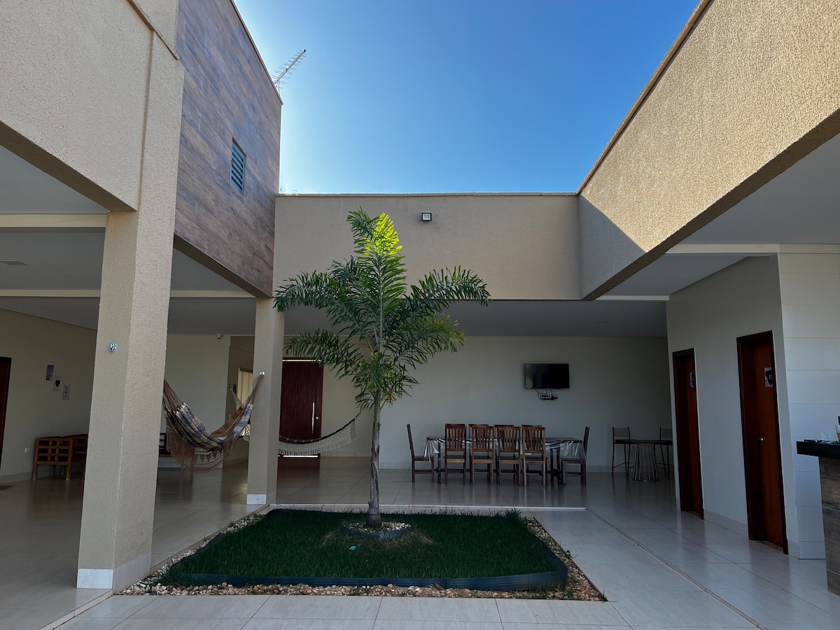 Divirta-se com toda a família neste lugar cheio de estilo. Chácara situada em condomínio fechado, composta por 3 suítes e sofa cama, todas com ar condicionado, TV em todos os quartos com sinal Sky, Internet, área de lazer completa, com churrasqueira, cervejeira, pergolado, pier suspenso, vários brinquedos para crianças, pula pula, mesa ar hockey, parquinho Áreia, sinuca, piscina com aquecimento solar, Não fornecemos ropa de cama.