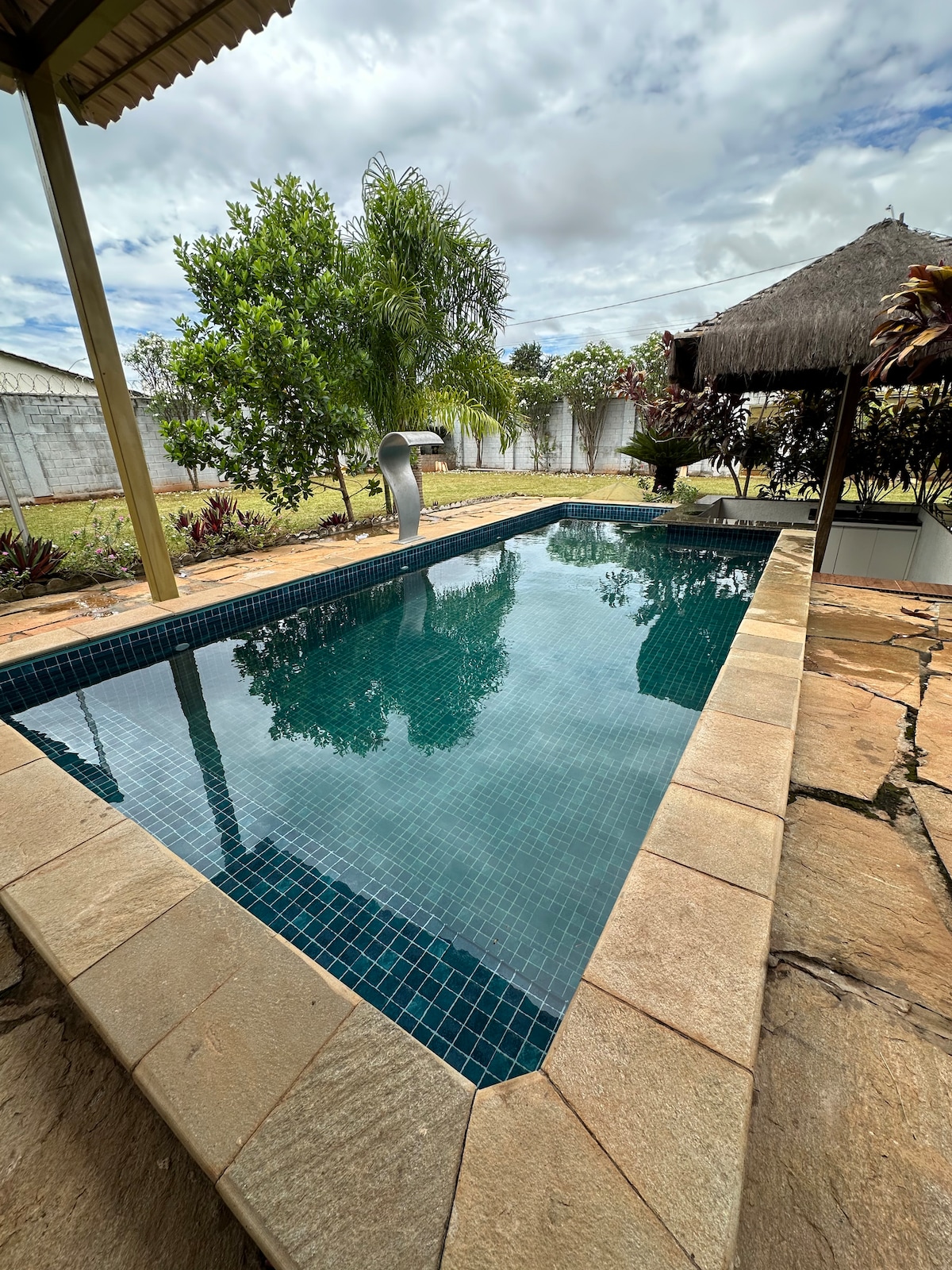 Local familiar, com piscina, bar molhadoe campo de futebol. Aconchegante por apresentar uma decoração rústica e uma bela iluminação da natureza. Próximo à cidade de Senador Canedo e à 12 minutos do shopping Flamboyant de Goiânia. CASA DO ANFITRIÃO A 150M DO LOCAL. CASO SEJAM TRAZIDOS CÃES, VIAGIÁ-LOS PARA QUE NÃO ATAQUEM AS AVES DO LOCAL. WIFI DISPONÍVEL. NÃO FORNECEMOS ROUPAS DE CAMA. CRIANÇAS ACIMA DE 2 ANOS PAGAM NORMALMENTE. VISITANTES PAGAM UMA TAXA DE R$ 70, FERIADOS R$ 80,00.
