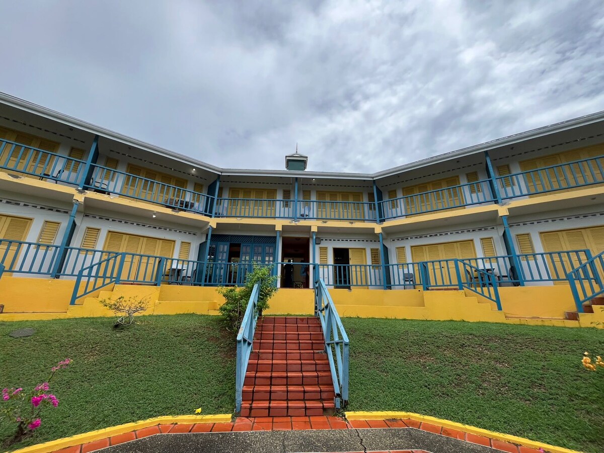 Beautiful modern guest house located in the heart of the city. Our charming rooms are located steps away from The Fort George Historical Site. Each unit comes fully equipped and has it's own private balcony.The compond has a pool and private nature trail. You can enjoy the spectacular view of the city, five islands and the entire western peninsular.