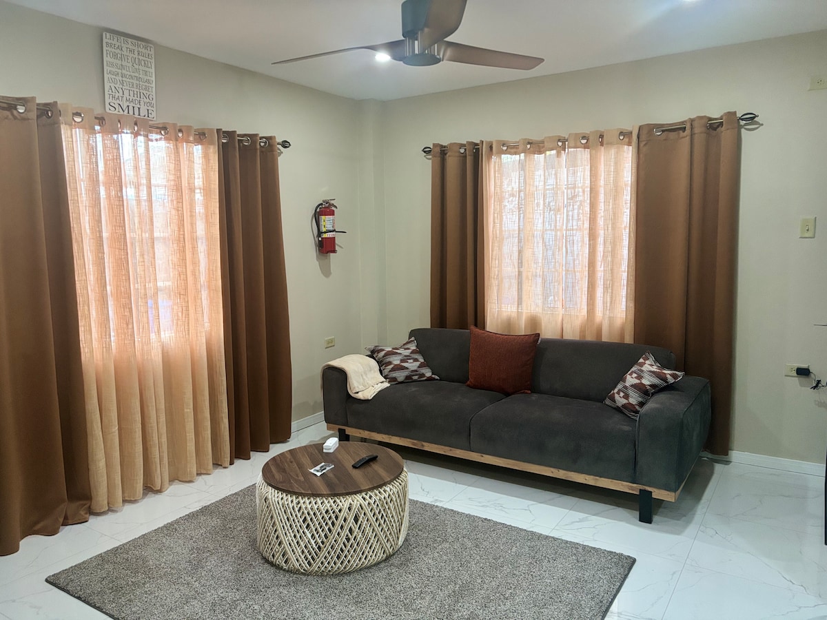 Enjoy a stylish experience at this centrally located place. Beautiful one bedroom apt. is designed for comfort, style, and unbeatable convenience. This cosy atmosphere is the perfect size for solo/business travelers or couples You are literally 2 mins walking distance from the area's main attractions. The Mall, TGIF Restaurants, Supermarkets. Easy accessibility to all local convenient places, yet remains a peaceful and quiet haven for a restful stay. Book your perfect, convenient getaway today!