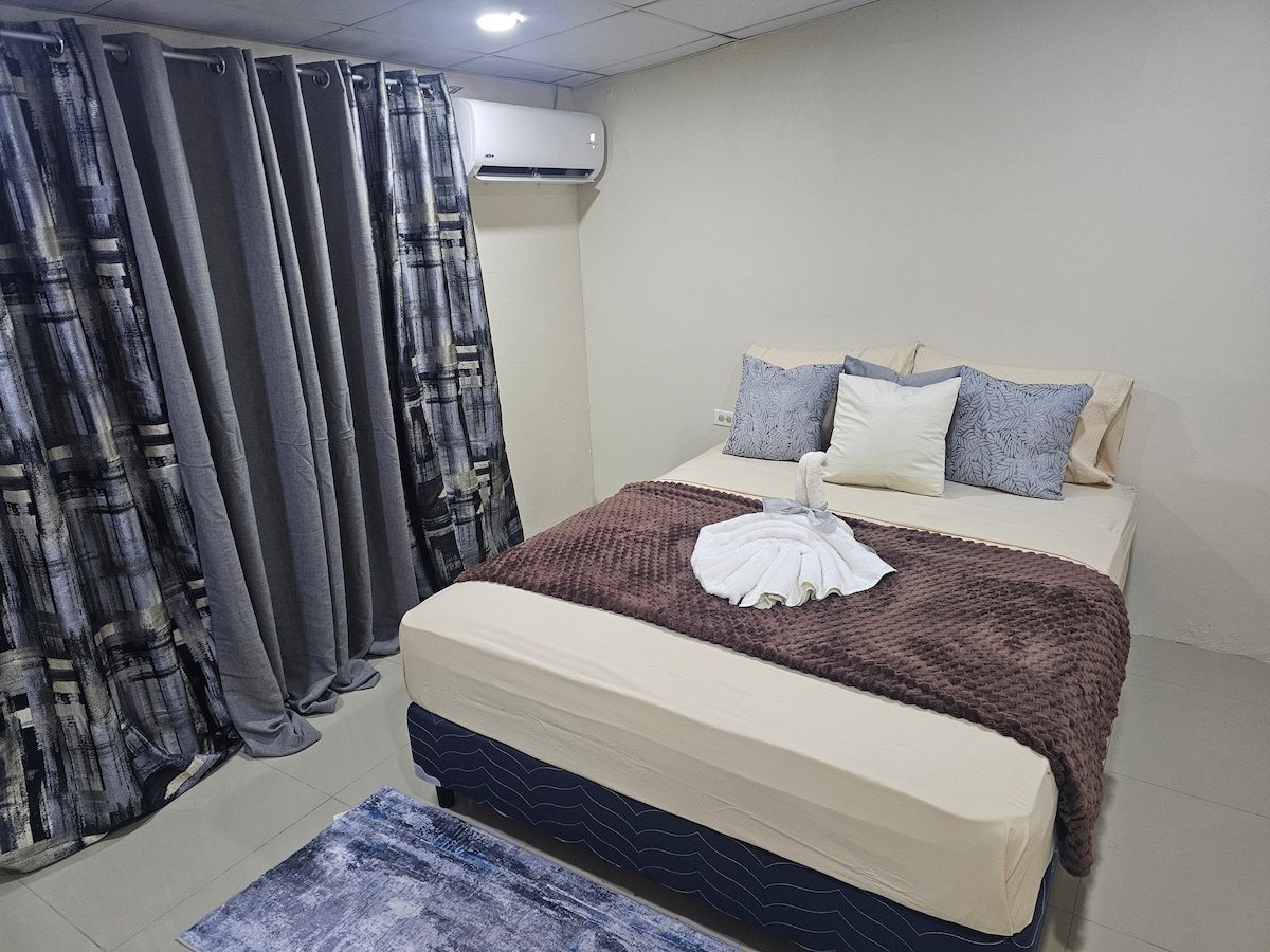 Enjoy a stylish experience at this centrally located place. Beautiful one bedroom apt. is designed for comfort, style, and unbeatable convenience. This cosy atmosphere is the perfect size for solo/business travelers or couples You are literally 2 mins walking distance from the area's main attractions. The Mall, TGIF Restaurants, Supermarkets. Easy accessibility to all local convenient places, yet remains a peaceful and quiet haven for a restful stay. Book your perfect, convenient getaway today!