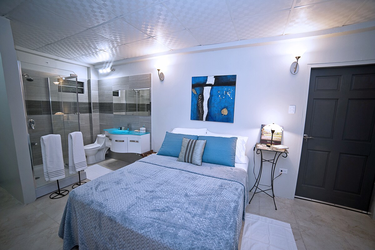 This Suite is a breathtaking apartment for you and your guest to relax and enjoy the beautiful island of Tobago. This apartment can sleep up to 2 persons: 1 Queen size bed (sleeps 2ppl) N.B: Space not suitable for kids. Some of the services we offer are car rental and shopping on-site. We are a few minutes away from pigeon point beach, store bay beach, the airport, supermarkets, restaurants, and famous hangout/chilling spots.