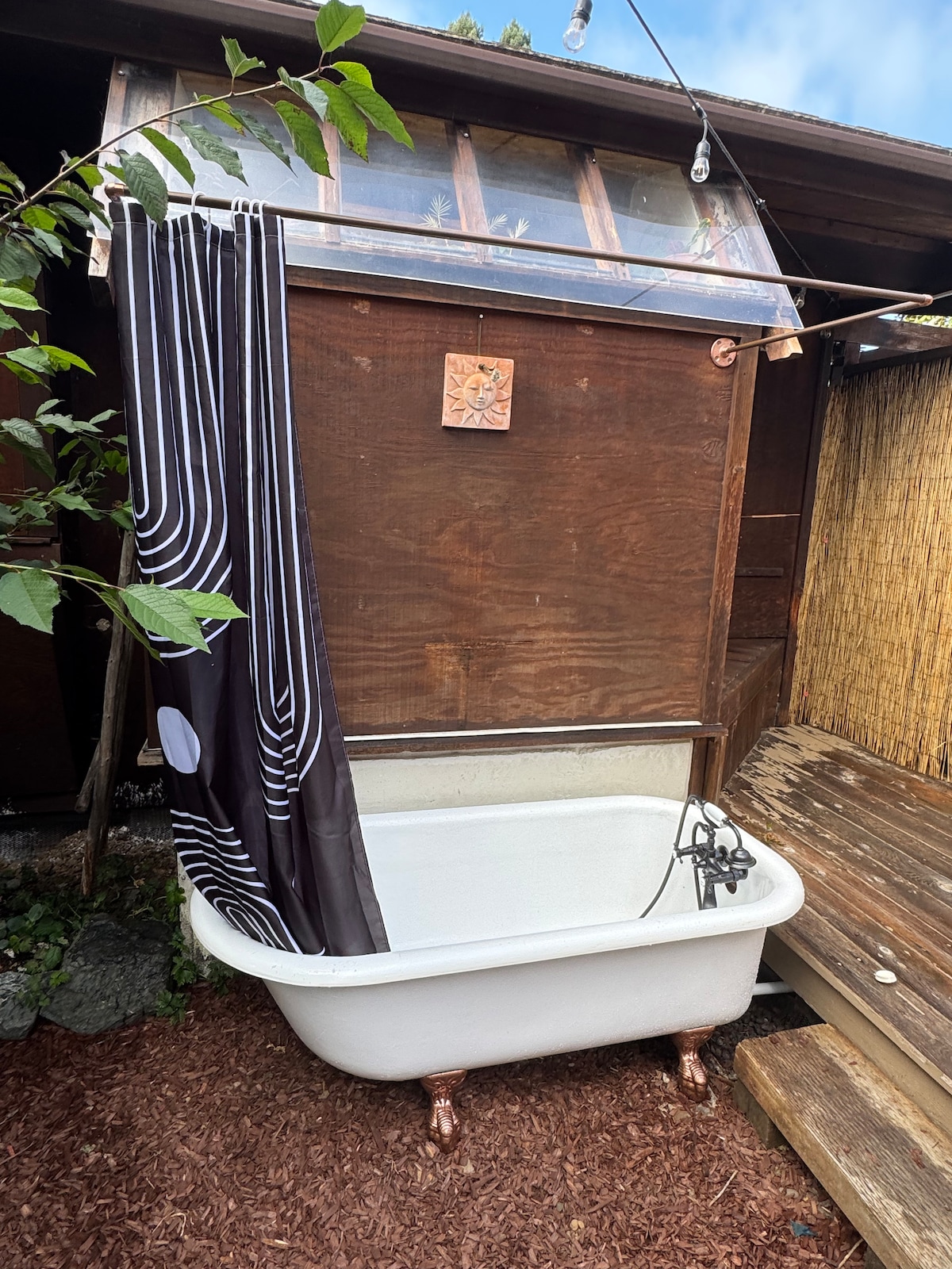 Relax among the trees and seclusion in this new luxury container conversion! The gorgeous outdoor area features a soaking tub, fire pit, bistro set and daybed. The modern decor and amenities of the interior is just as stunning and has everything you would want in a home away from home. Our central location is just 10 mins to both Arcata and all the breathtaking beaches surrounding Trinidad. Another perk of staying with Humboldt Getaways is our gift voucher with discounts to local businesses!