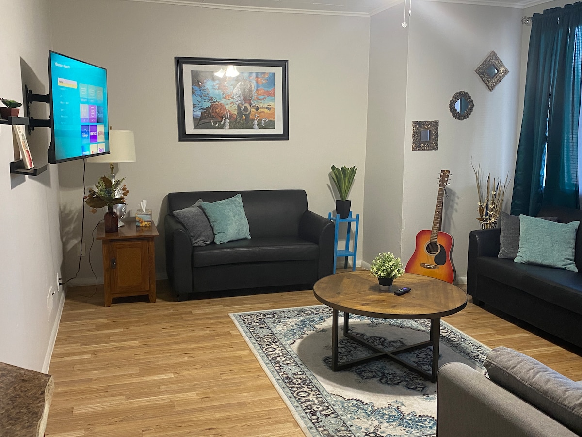 Come relax at a home away from home in our quaint mother-in-law suite. (The Mil) The space accommodates 2 comfortably. There is a kitchen space equipped with hot plate, microwave and toaster oven where you can air fry, grill, bake, etc. There is a mini fridge available for use and all the basics to cook a meal. A bedroom area with queen bed and full bathroom. Living room can second as additional sleeping area. Sitting outside on the patio you have a great view of the Spanish peak mountains.