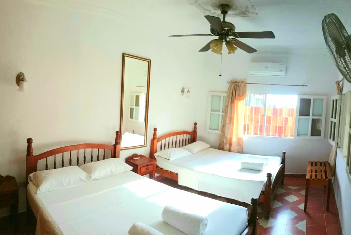 Discover the magic of Trinidad in a 19th-century colonial home in the historic center. Enjoy high ceilings, antique furniture, and a cozy patio. Steps from plazas, museums, and restaurants. Private room with ensuite bathroom, A/C, and minibar. Access to kitchen, dining room, and family living room. A true local experience full of history, Cuban culture, and colonial charm.
