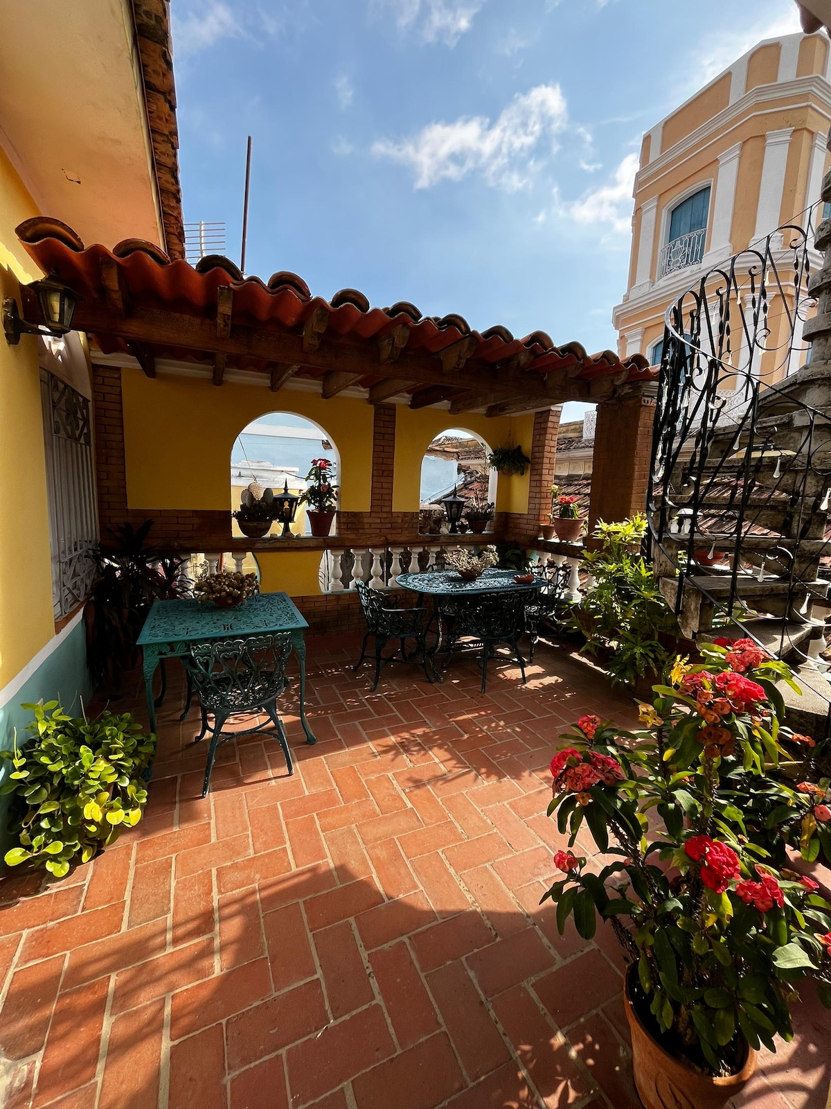 Located at the center of Trinidad and with all the necessary privacy on the upper floor. Relax with the whole family in this accommodation where tranquility is breathed and you can enjoy our terraces. The homeowner could help you with tours. Travelers from the USA can use the Category of Support to the Cuban people Available a room with a private bathroom and a cozy terrace. WIFI not included on the booking price. Power plant for 3 hours at night due fuel limitations