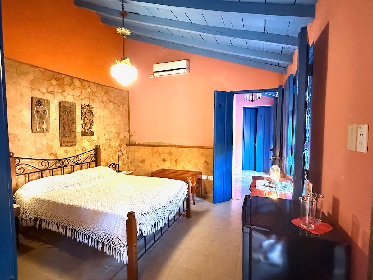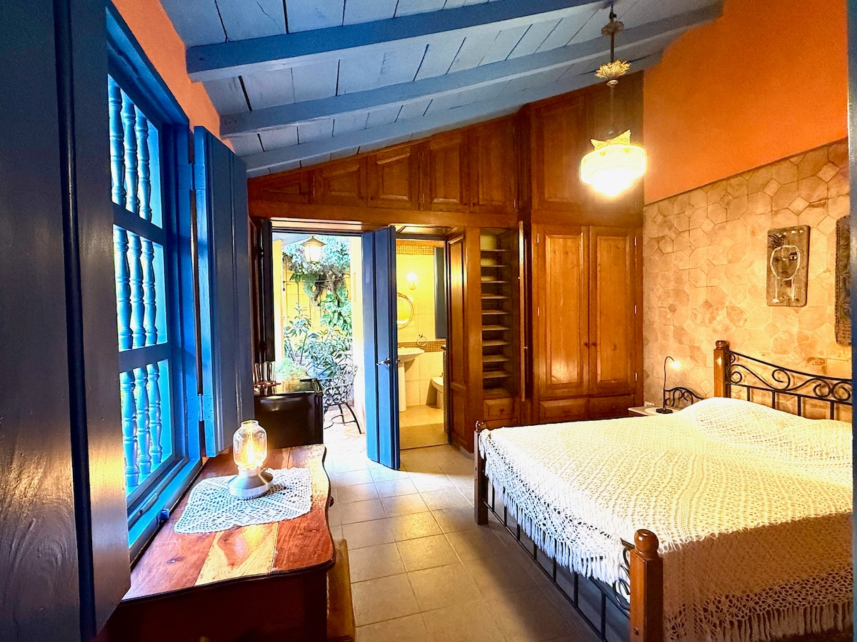 Despierta rodeado de calma en una habitación colonial boutique situada en el patio-jardín de una casa histórica. Un espacio íntimo, fresco y bellamente decorado para desconectar del ritmo diario. Disfruta de aire acondicionado, agua caliente, excelente presión de agua y electricidad ininterrumpida gracias a paneles solares. Conéctate con Wi-Fi Starlink satelital de alta velocidad y relájate en nuestra barra 24 horas con café, jugos, cervezas o cócteles a cualquier hora.