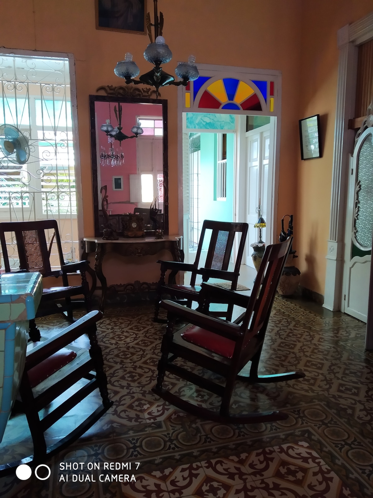 Bienvenidos a Cuba y a nuestra casa colonial en Trinidad Casa colonial céntrica grande y hermosa Habitación ventilada y amplia. Llena de visuales a los mejores paisajes.En la terraza se ofrecen los servicios de desayuno ( No incluido ) que es muy agradable para el cliente. En este espacio tenemos todas las condiciones para que ud contamos de luz y ventilador en los casos de falta de fluido eléctrico además la habitación tiene amplias ventanas para ventilación natural.