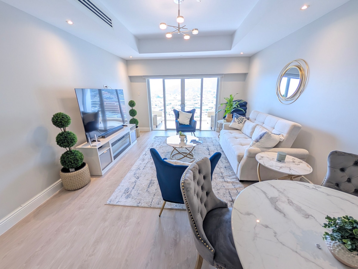 Where the mountains meet the sea and the city pulses just beyond your window, this modern 3-bedroom condo invites you into a world of quiet luxury and curated beauty. Wrapped in soft scents and sunlight, with plush king and queen beds, Afina showers that cleanse like rain, and local art that tells a story, every corner speaks of comfort and calm. From sweeping views to sleek design, here you’ll find space to breathe, to dream, to savor—your elevated escape in the heart of it all