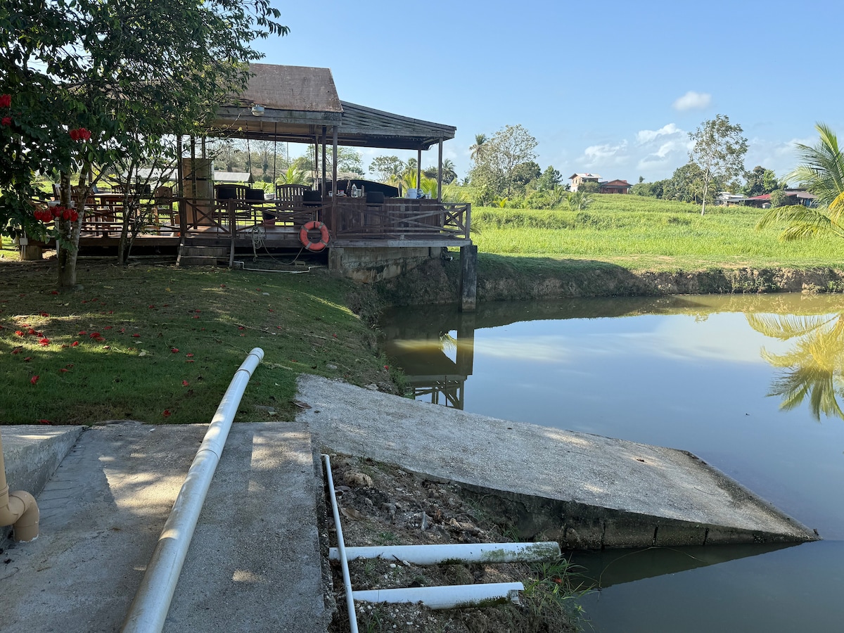 Relax with the whole family at this peaceful place to stay. Nested in a cocoa estate surrounded by fishing ponds, birds singing , wild life and magnificent Mountain View. A bond with nature.