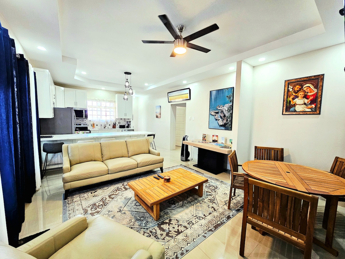 Unwind in an oasis of Style and Comfort at this centrally-located space. Just 7 mins from the airport, Trincity mall and other shopping areas. Ideal for business trips and couple/friends vacation. Retreat in our Modern Boho Master Bedroom, with high-end Designer Ensuite Bath, or pour your favourite glass from our mini wine seller. Designed with a fully equipped stainless steel kitchen to prepare your favourite dishes. Lounge in our cozy patio and roast your snacks over our petite fire place.
