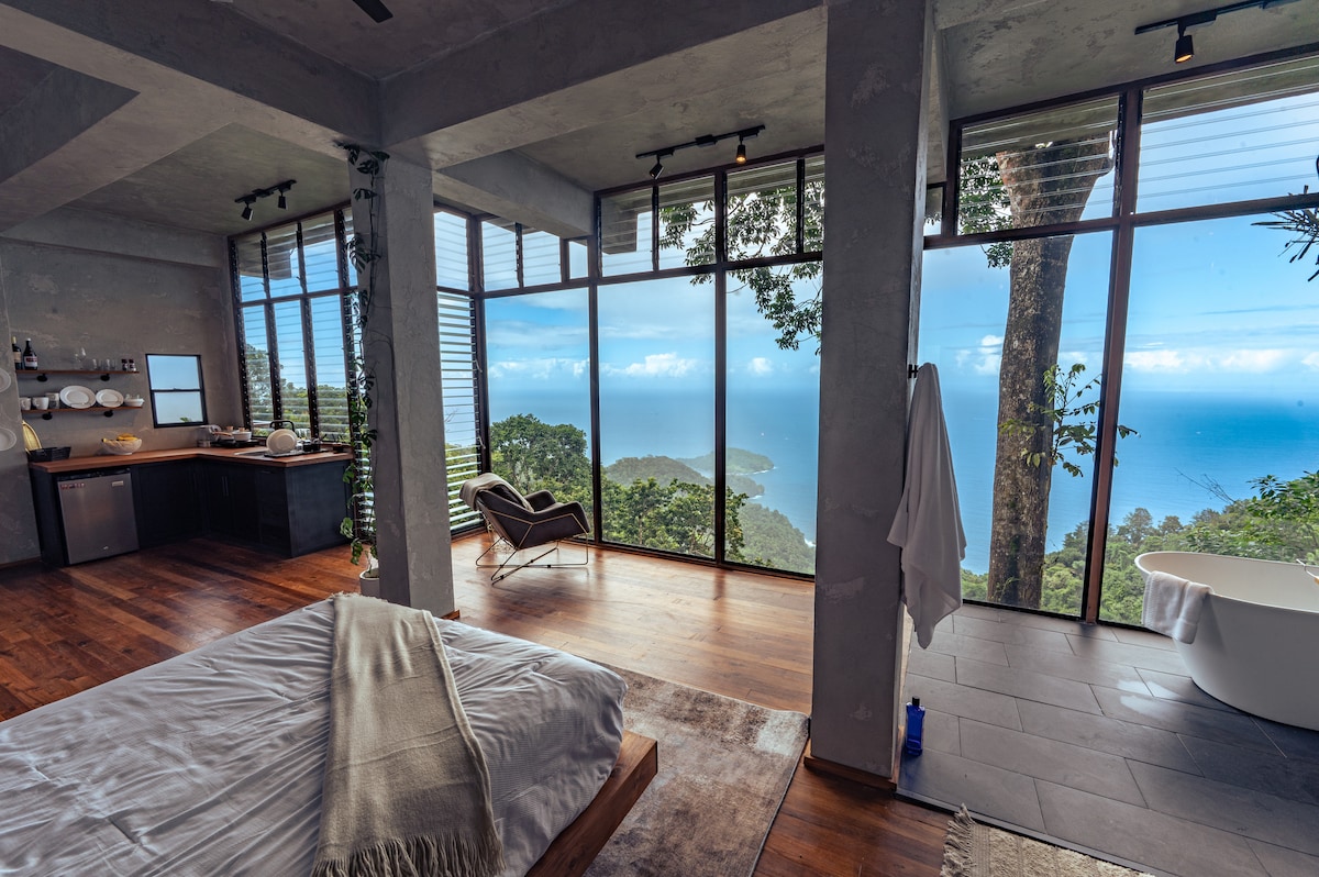 A luxurious observatory for experiencing nature like never before. Wake up to clouds and birds soaring beneath your feet. Have a one-of-a-kind bath experience, 1524 ft above the Caribbean Sea, lathered with bubbles and surrounded by humming birds. See the mist roll over the forest canopy and submerse you completely. Explore Paramin community and fall in love with its people & culture. Whether for remote work, a romantic get away, creative inspiration, or lazy days, Paramin Sky welcomes you!