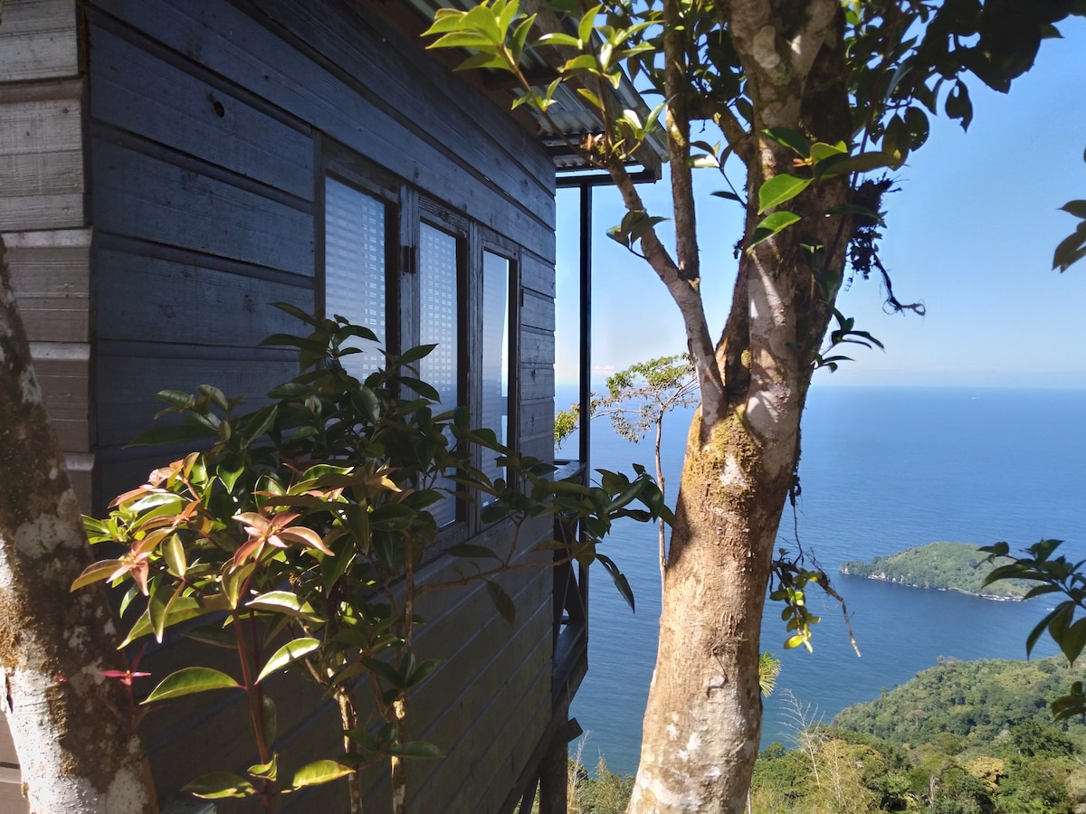 Enjoy the sounds of birds and the rustle of wind through the leaves of a 100-year-old nutmeg tree in this cozy treehouse. Surrounded by trees with stunning views of the surrounding forest, lush mountains and the Caribbean Sea this wood and glass treehouse is a great space to escape the hustle and bustle of city life. Access via a short hike but on arrival relax and enjoy the quiet, comfort and modern amenities while immersing yourself in the raw beauty of nature.