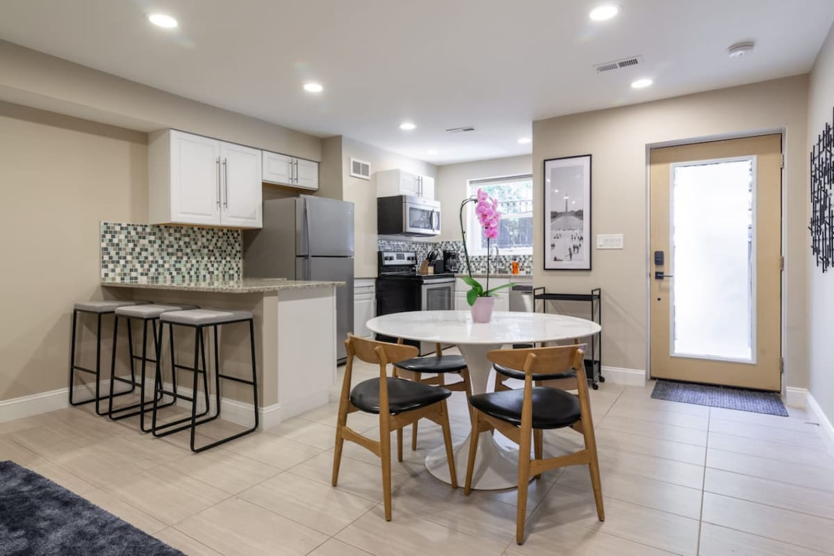 Escape to a cozy, uniquely styled Airbnb in Washington, DC, where limewashed walls & home furnishings create a soft, luxurious, and textured warmth to your stay. Perfect for business travelers, romantic getaways, and urban adventurers, the intimate dining area, and serene bedroom make it easy to feel at home. Located minutes from Navy Yard (NATS & Audi Field) as well as the Wharf, enjoy a peaceful oasis just minutes from DC's top landmarks & vibrant dinning scene.
