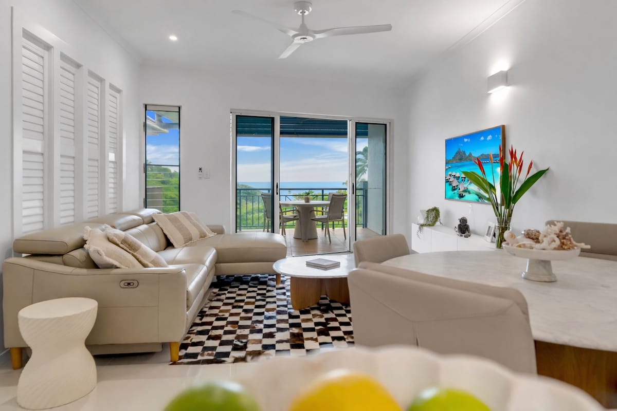 Welcome to your dream escape, an exclusive three-bedroom Waterfront Condo perfectly perched on the northern end of the iconic Cairns Esplanade. From the moment you arrive, you will be captivated by the water views across the stunning Trinity Inlet waterway, while the serene backdrop of lush mountain ranges creates a truly unforgettable setting. Ideal for couples, families, small groups, business travelers or a romantic getaway seeking a luxury coastal experience in the heart of Cairns.