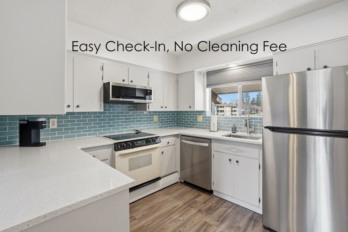 Please be advised: There is an active construction project close to this residence. This private 1-bedroom, 1-bathroom space is just a 15-minute walk to Sanders Beach, downtown Coeur d'Alene, and great hiking. It features a full kitchen, balcony, and secure parking. Relax on the outdoor patio with a grill, fireplace, and hot tub. Centrally located with quick access to local events, it's perfect for 1-4 guests seeking both comfort and convenience in a modern, peaceful setting.