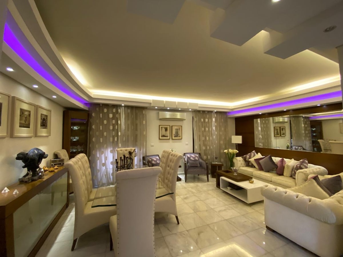 Please read the section: "Other Details to note" before booking. Spacious 237 m², 3-bedroom apartment in a gated building with 24/7 security and two free parking spots. Across from Spinneys & McDonald’s, next to Sport District Gym, and a 5-min walk to Dam & Farez’s lively café street. Enjoy 24/7 power with solar energy, ultra-fast WiFi 7, and LG AC units in every room. Modern, secure, and perfectly located—ideal for families, groups, or business travelers. Book your stay today.