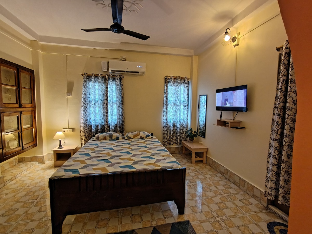 homestay will 1 double bed and single bed with kitchen amenities and Ac available with extra 200 charge.