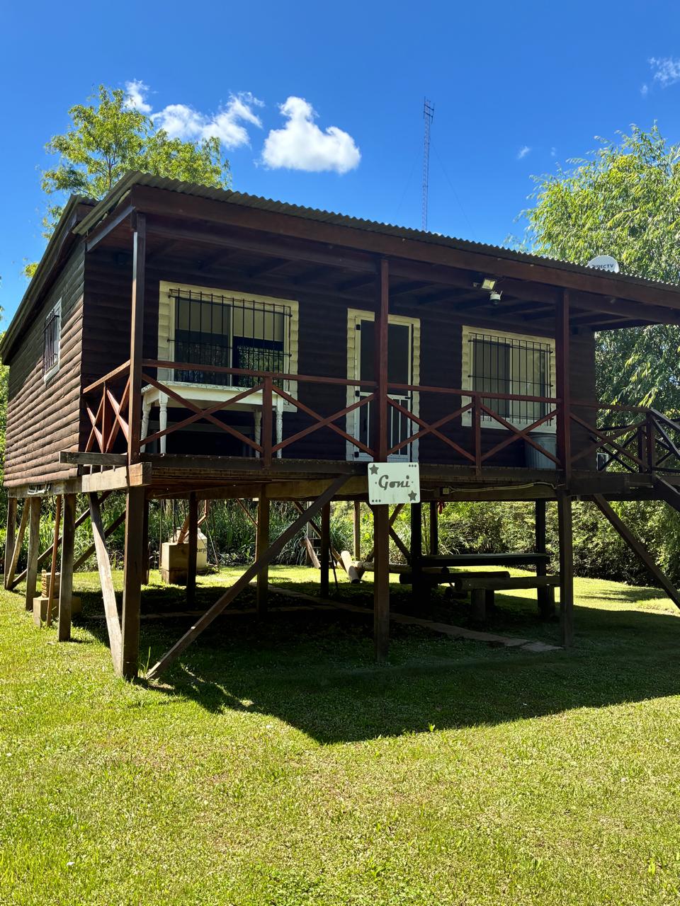Cabaña apta para 4 personas (hasta un menor adicional utilizando las camas existentes). Una habitación principal en planta superior con cama de 2 plazas, planta inferior cocina comedor y baño con un sofá cama de dos camas individuales. La cocina con utensillos para 4 personas, heladera con freezer, ventilador, estufa elèctrica, mesa y sillas para exterior, cocina a gas, ollas, TV y wifi(No apto streaming/Meeting).La cabaña está ubicada sobre el Río Sarmiento con un frente sobre el río de 45 Mts.