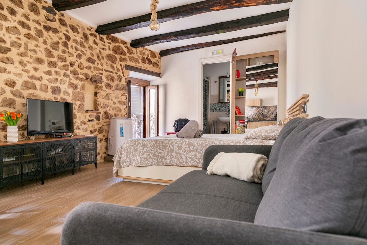 Embrace the enchanting ambiance of the old town in this charming studio adorned with 2 Juliet balconies that bathe the space in natural light. Perfect for up to 3 guests, this retreat features a queen & a sofa bed pullout ideal for a child. It’s located in a renowned area celebrated for its Aqua Therme spa and healing mineral waters. Discover the culinary delights of Fiuggi with ease, including one of the city's premier restaurants steps from your doorstep. Enjoy your with comfort & sunlight.
