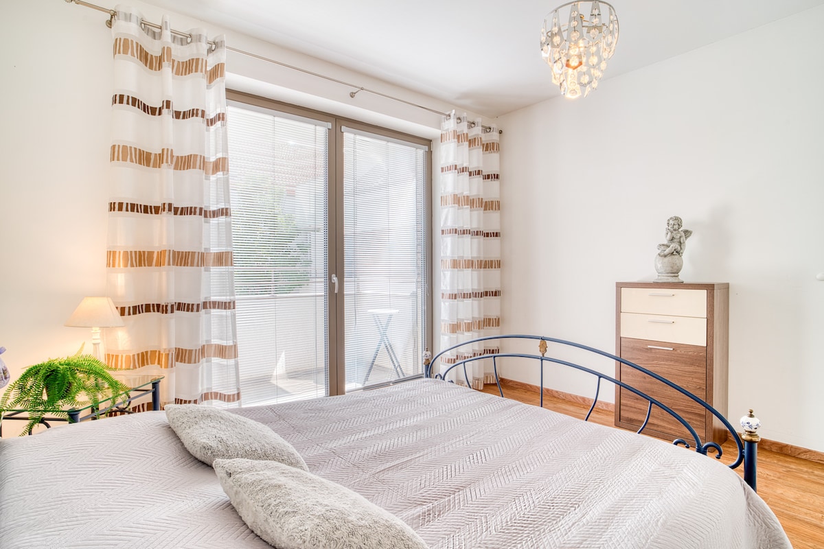 舒适公寓,带空调、花园和停车位