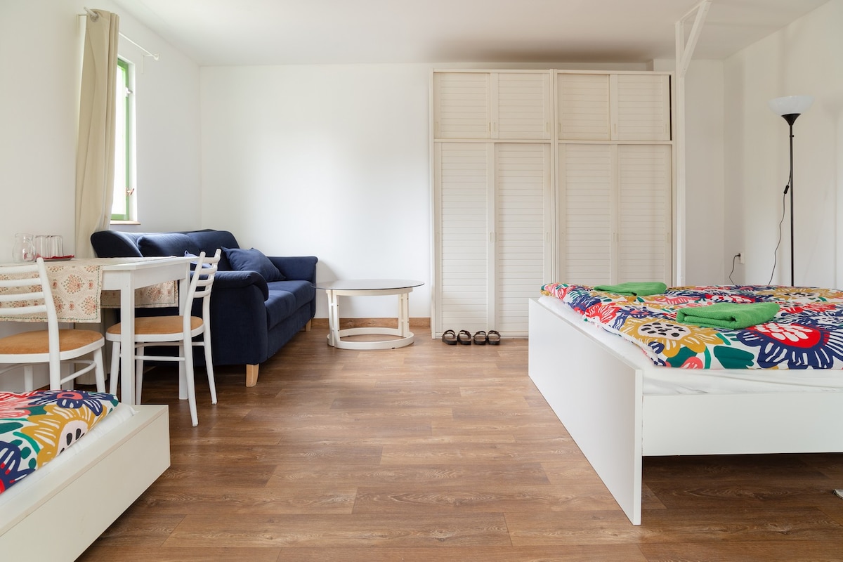 An unusual place just outside of the centre Bratislava located inside a greenhouse, so be prepared to be surrounded by plants and flowers. The room is nice and with an artisanal touch. The kitchen is spacious, fully-equipped and new. Guests like the quiet atmosphere of the place and feel comfortable. Parking is just in front of the greenhouse. Close to the cycling road nearby the river Danube and to the centre with bus.