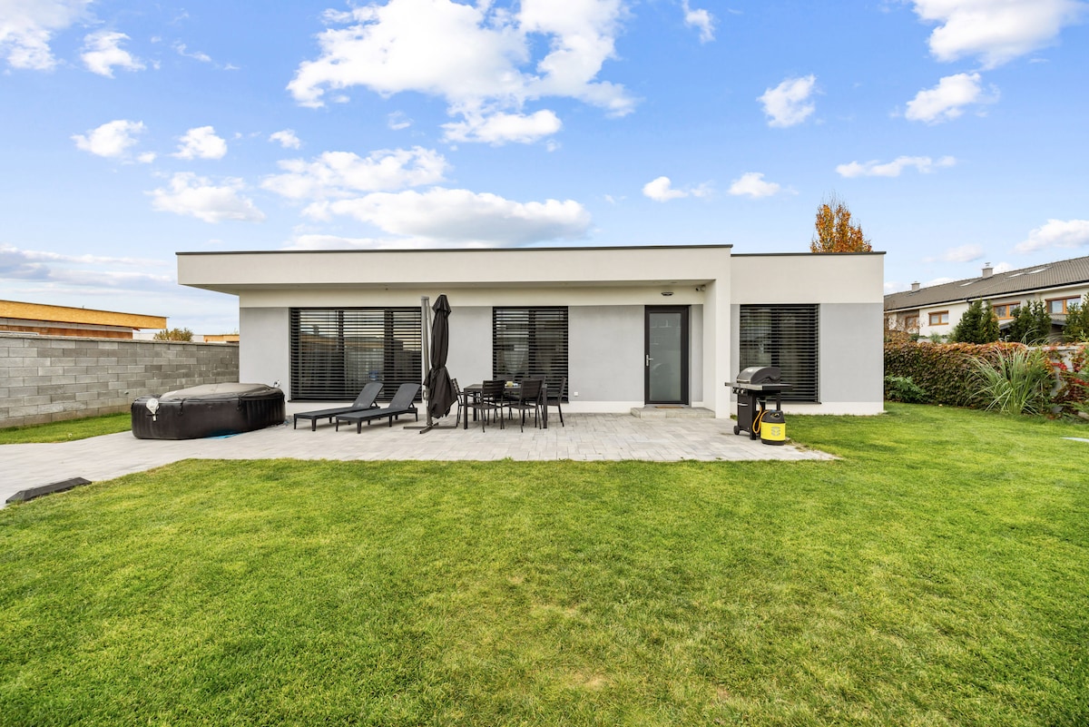 My house is situated in beutifull town in small distance from Bratislava.(20min) Area is very private with all new-build houses around, very close to vineyards and woods close by. It' s suitable for 6people. Downstairs area consists from one large open living area with large sofa, television and kitchen with all equipments, dishwasher,fridge-freezer,oven,microwave and all electrical appliances needed. Upstairs have 3 large bedrooms. Every bedroom have a smart TV. One Bathroom with bath,shower,toilet and washing machine. The house is perfect for larger families,group of people,couples or alone travelers for holiday or business trip, good for few-days stay, longer stay. Outside have a large garden with small swimming-pool,large patio with BBQ grill,lovely sitting area for summer days.