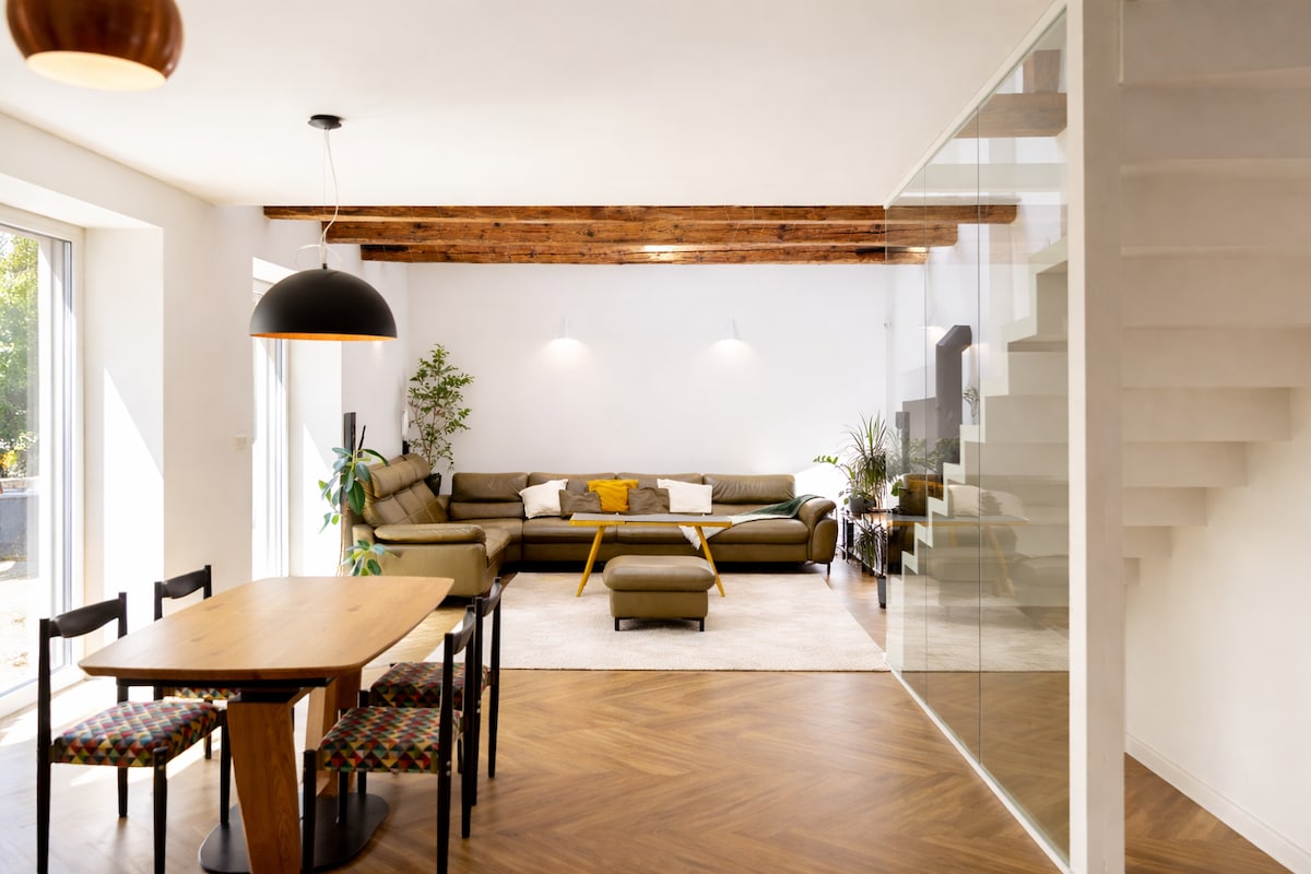 Not another apartment. You stay in a rare 295 m² Old Town house with 4 bedrooms, 3.5 bathrooms, your own garage, and a private Finnish or Infrared sauna - all yours. The space is designed for gathering, relaxing, and creating great memories together. Coffee lovers will be delighted by the legendary Lelit Bianca espresso system with curated beans, plus a full suite of coffee gear for every ritual. Just steps from cafés, galleries, the Medical Garden, and the Danube - yet entirely your own.