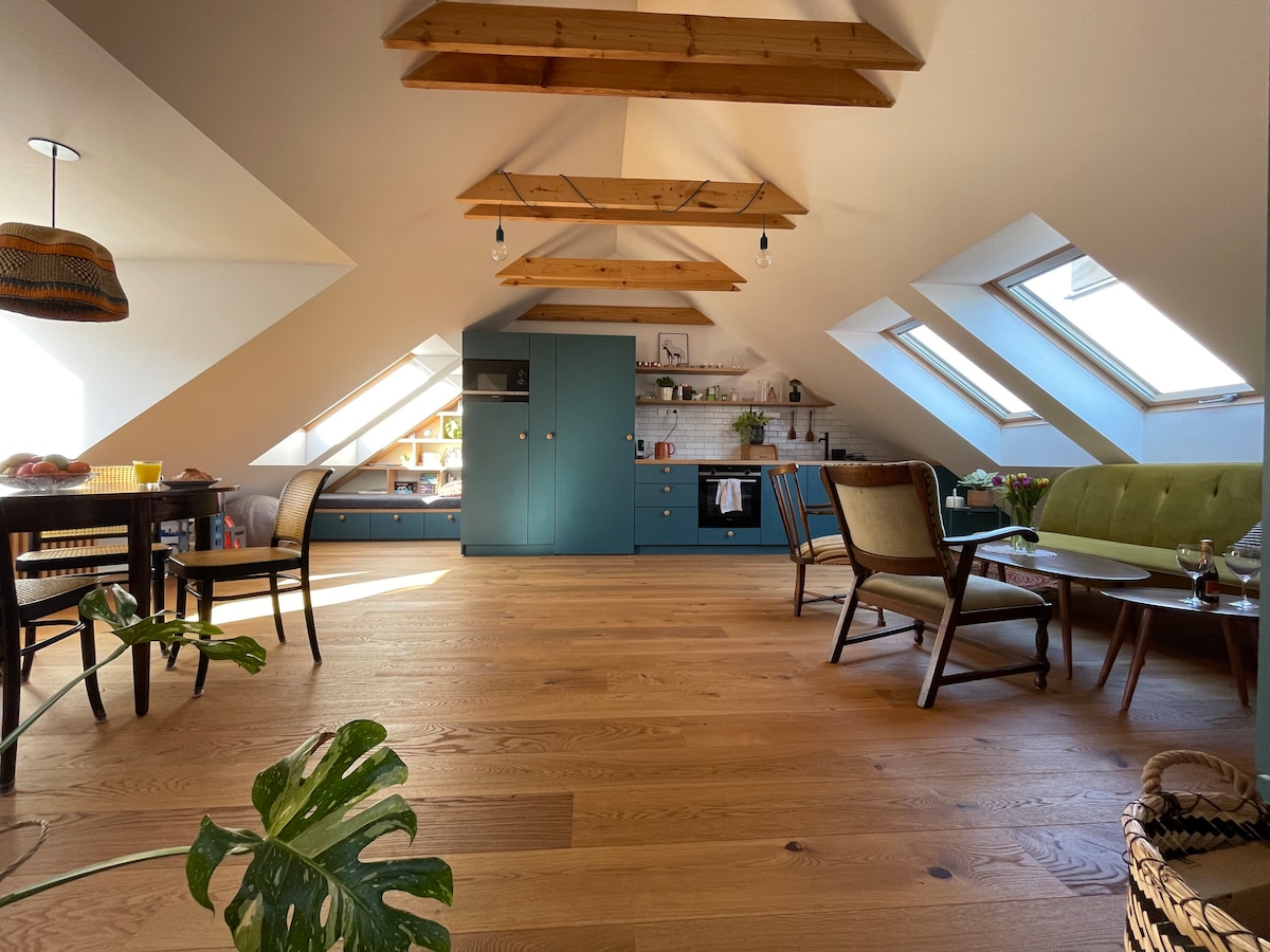 Luxusný tichý apartmán so samostatnou veľkou terasou v centre mesta, dostupný autom a verejnou dopravou v kompletne zrekonštruovanom historickom dome z r. 1911. Apartmán je na 4. poschodí bez výťahu. Apartmán prevádzkuje majiteľ celej nehnuteľnosti. BEZ VÝŤAHU