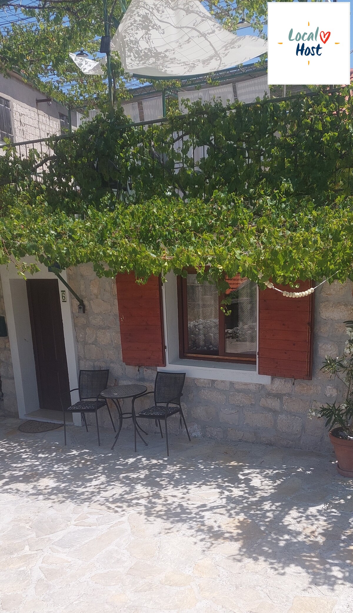 Brand new and very comfortable studio apartment in backyard of old stone house in center of Split, with free parking space, beautiful terrace in natural shade of trees, 10 minutes away from beaches (Bacvice), Diocletian's palace, etc. Welcome!