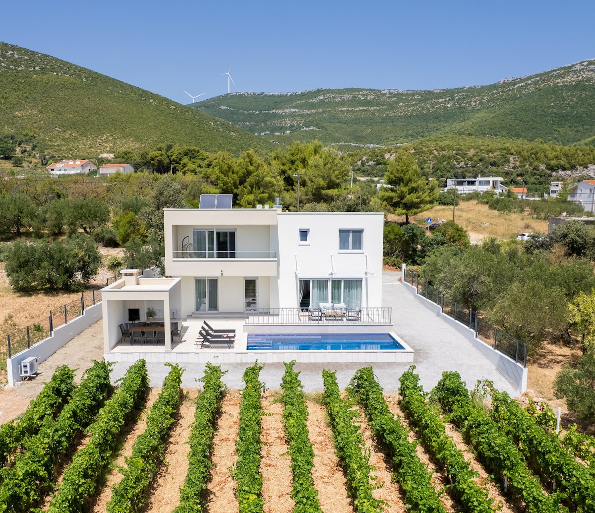 斯普利特附近的安静别墅|带恒温泳池和景观