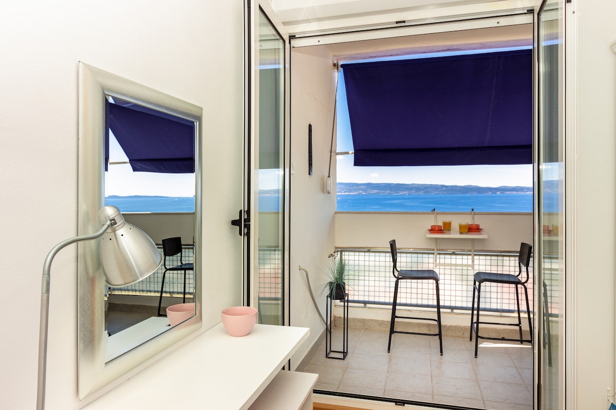 Apartments Sea are situated on a perfect location nearby Trogir, right on the beach, with the best view on the beautiful Adriatic sea and Islands. It's peacefull and quiet area. In front of the house is 3 kilometres long seaside promenade, which contains friendly hosts and healthy food in a small Mediterranean restaurants.Both apartments are with great location and very easy access to Trogir (beautiful old town with large selection of reasonably priced restaurants) and Split via boat taxis.