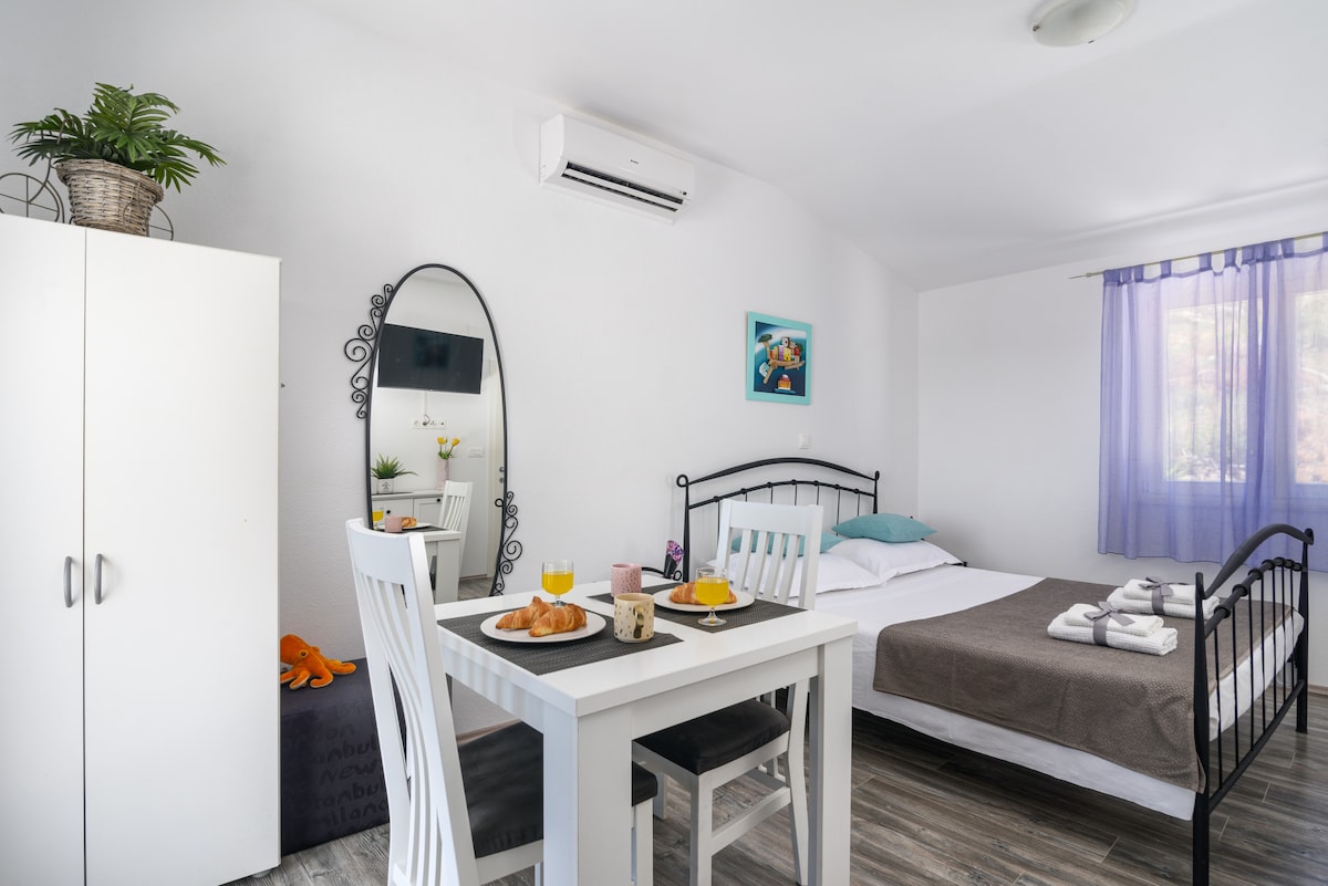 Welcome to Studio Apartment Andriana! We are located in the heart of the Old Town, just a short 300m walk from Diocletian's Palace and the Riva promenade. If you are arriving by sea or bus, we are only 500m from the ferry port and main station. Plus, the famous Bačvice beach is just 350m away! You will be staying in a piece of history—our house is a 450-year-old stone building. It is a protected cultural monument located in the historic and charming neighborhood of Lučac